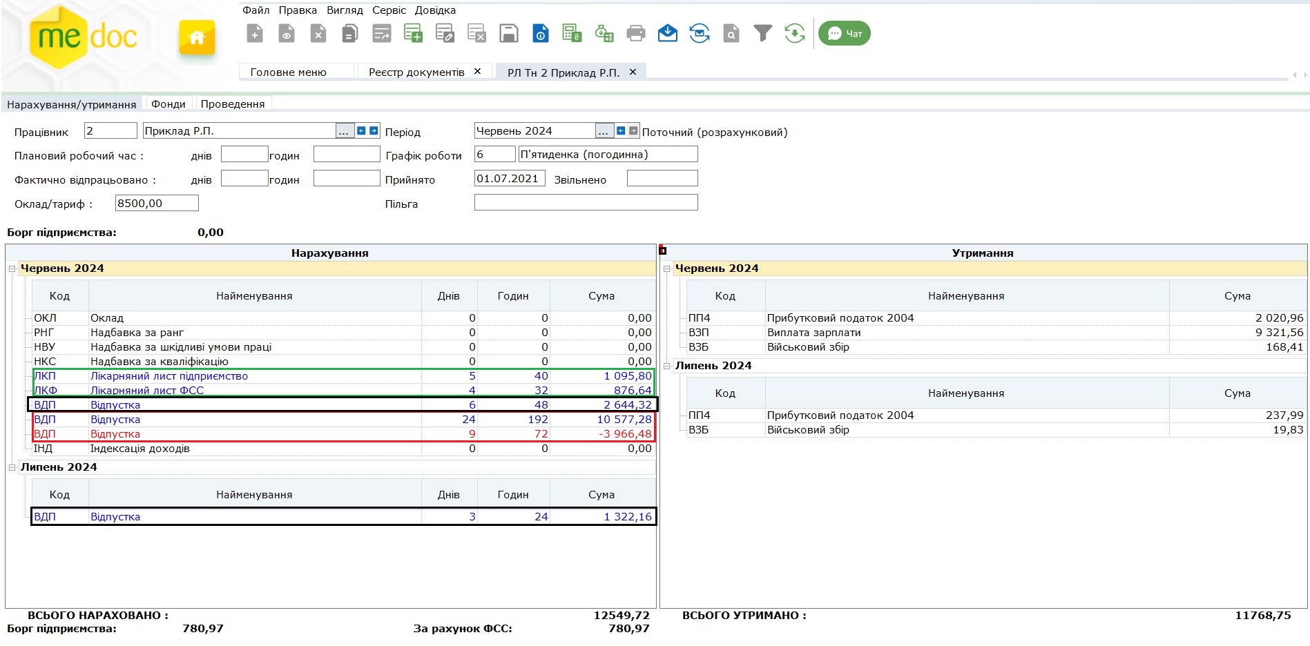 Як в ПЗ «M.E.Doc» нарахувати лікарняний, що припав на час щорічної відпустки?