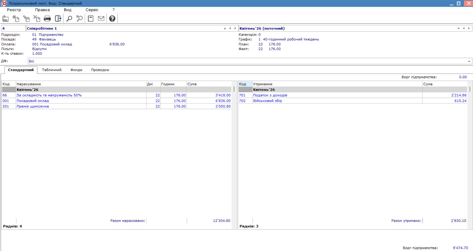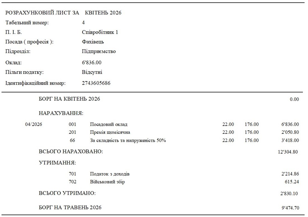 - Текст листа (наприклад “за Квітень 2026 р.”)