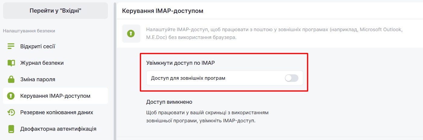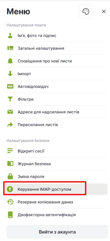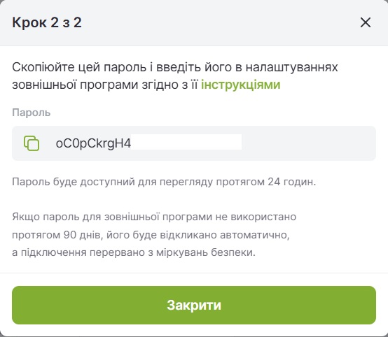 - Пароль поштового сервера (пароль, який згенерований у пошті);