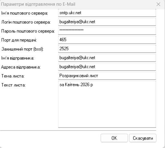 Розсилка розрахункових листів працівникам на e-mail з облікової системи